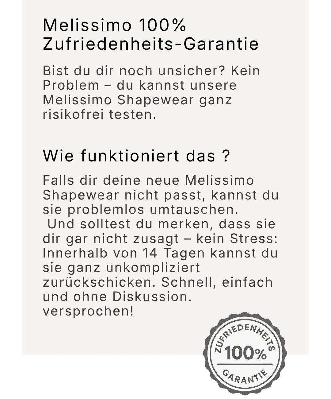 Melissimo wurde für Frauen entwickelt, die sich in ihrer Kleidung wohlfühlen wollen. Die Shapewear formt sanft, sitzt bequem und bleibt unsichtbar im Alltag. Weil du dich nicht anpassen solltest – sondern deine Shapewear an dich.